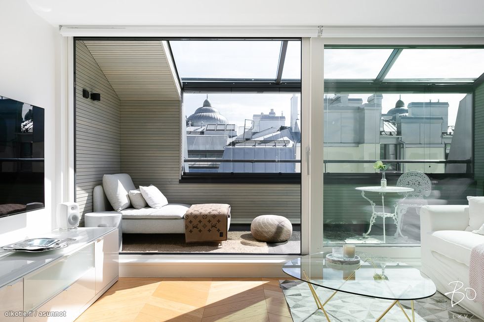 Hänen kotiunelma on urbaani, sillä hän haluaa asua stadissa eikä autoile. Ullanlinnan unelmakodissa piste iin päällä oli oma liukulasiovien kautta aukeava lasitettu kattoterassi.